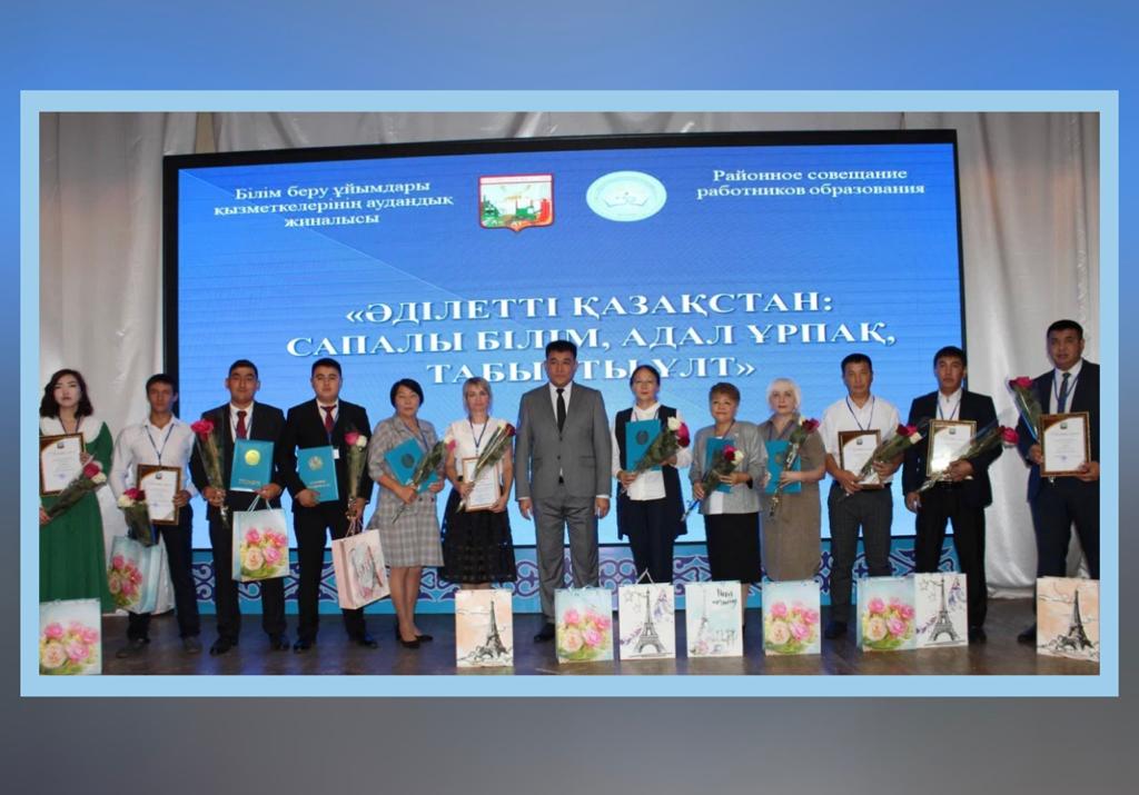 29 тамызда Елубай Өмірзақов атындағы аудандық мәдениет үйінің базасында аудан әкімі Қ.Б.Мыржақыповтың төрағалығымен "Әділетті Қазақстан: сапалы білім, адал ұрпақ, табысты ұлт" тақырыбында білім беру қызметкерлерінің аудандық кеңесі өтті.